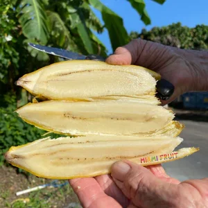 Flavor Profile: The taste is slightly tart similar to an apple banana but they have a thicker and super creamy texture. The nickname “ice cream” is for its soft serve texture- not the flavor.