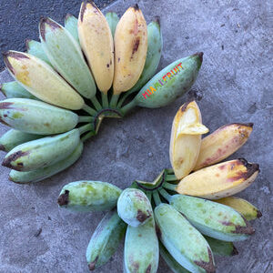 Important Info: These Bananas are not really blue! Many photos of Blue Java on the internet are photoshopped. None of the photos on our site are edited. When it’s unripe, sometimes the outer peel has a blue-ish green hue. As it ripens, the outer peel will turn fully yellow.