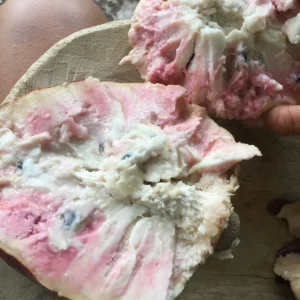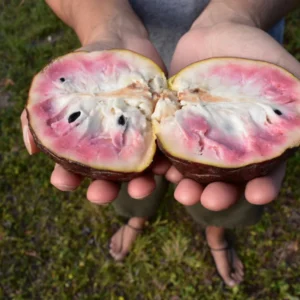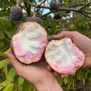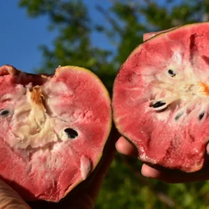 Flavor Profile: Tastes similar to a Rollinia with raspberry instead of lemon flavor. Many say berry custard is what they could correlate the taste with as well! There are many varieties of Custard Apple and the flavor varies slightly between the varieties, as many trees are grown from seed. The taste is always sweet and custardy with rich and unique flavors ranging from raspberry to a sweet vanilla custard. One of the most delicious fruits in the world in our opinion!