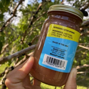 Origin: Jaboticaba, also known as Brazilian Tree Grape, is native to South Eastern Brazil, but it grows very well here in South Florida. Miami Fruit’s Jaboticaba Jelly is handmade in small batches from the sweet inner juice of the Jaboticaba fruit. Our Jaboticaba is 100% locally grown, right here in sunny South Florida!